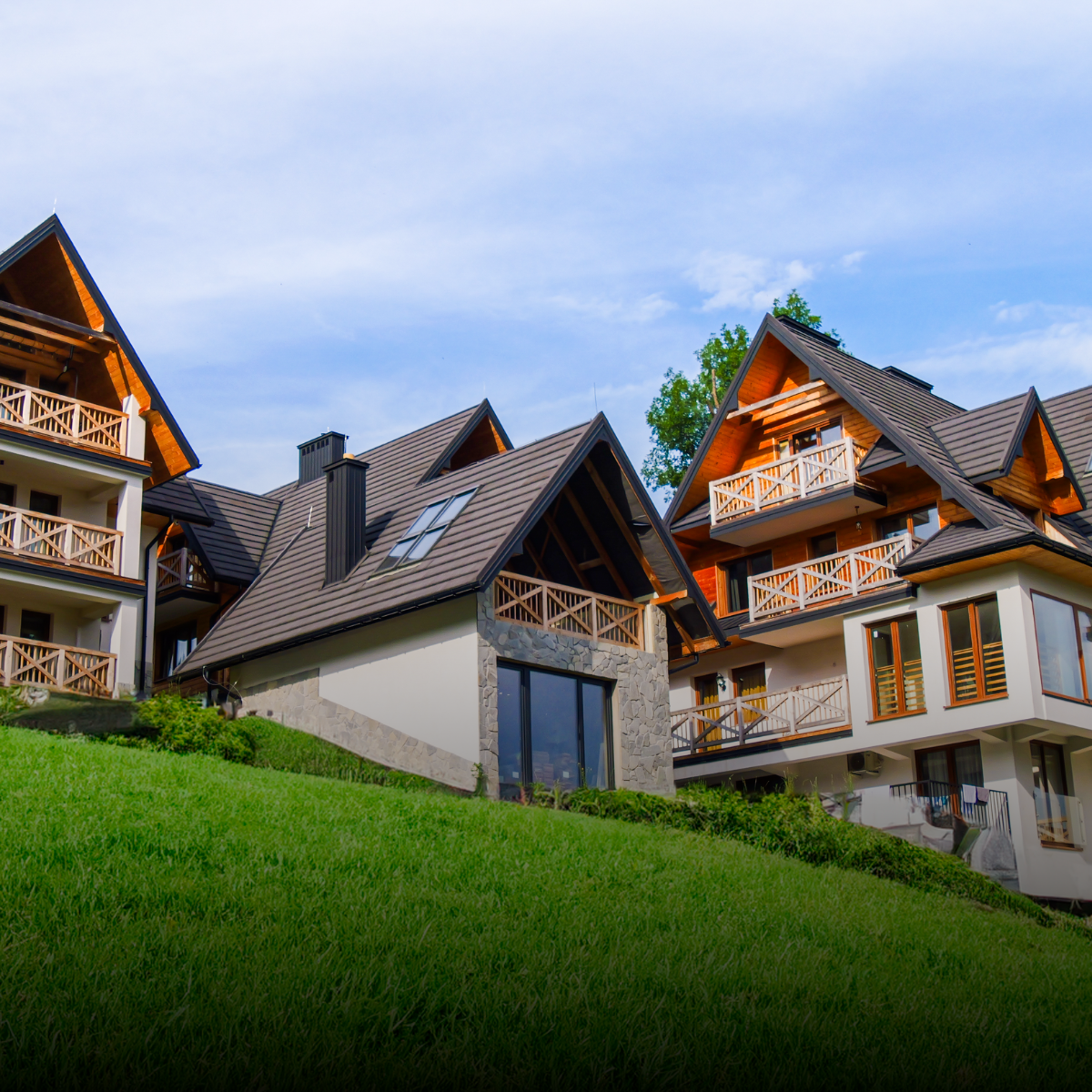 Luksusowy apartamentowiec w sercu Tatr, gdzie nowoczesne zakwaterowanie łączy się z zapierającymi dech w piersiach widokami na górskie szczyty.