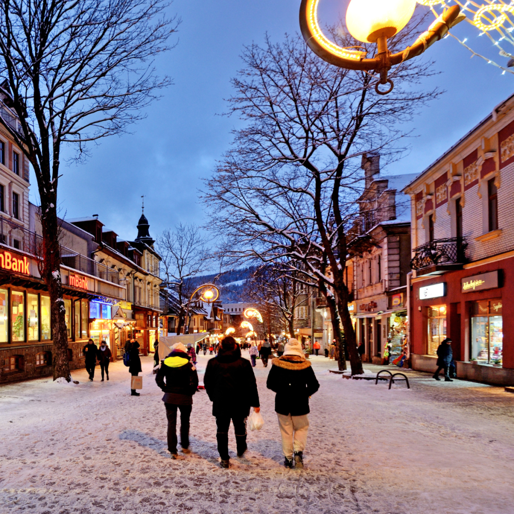 Kiedy myślimy o Zakopanem, Krupówki natychmiast pojawiają się w naszych myślach. To bez wątpienia jeden z najbardziej rozpoznawalnych deptaków w Polsce, gdzie o każdej porze dnia spotykamy tłumy. Krupówki pełne są sklepików z pamiątkami, restauracji oraz regionalnych karczm, a spacerując, możemy nawet zrobić zdjęcie z kultowym zakopiańskim misiem.